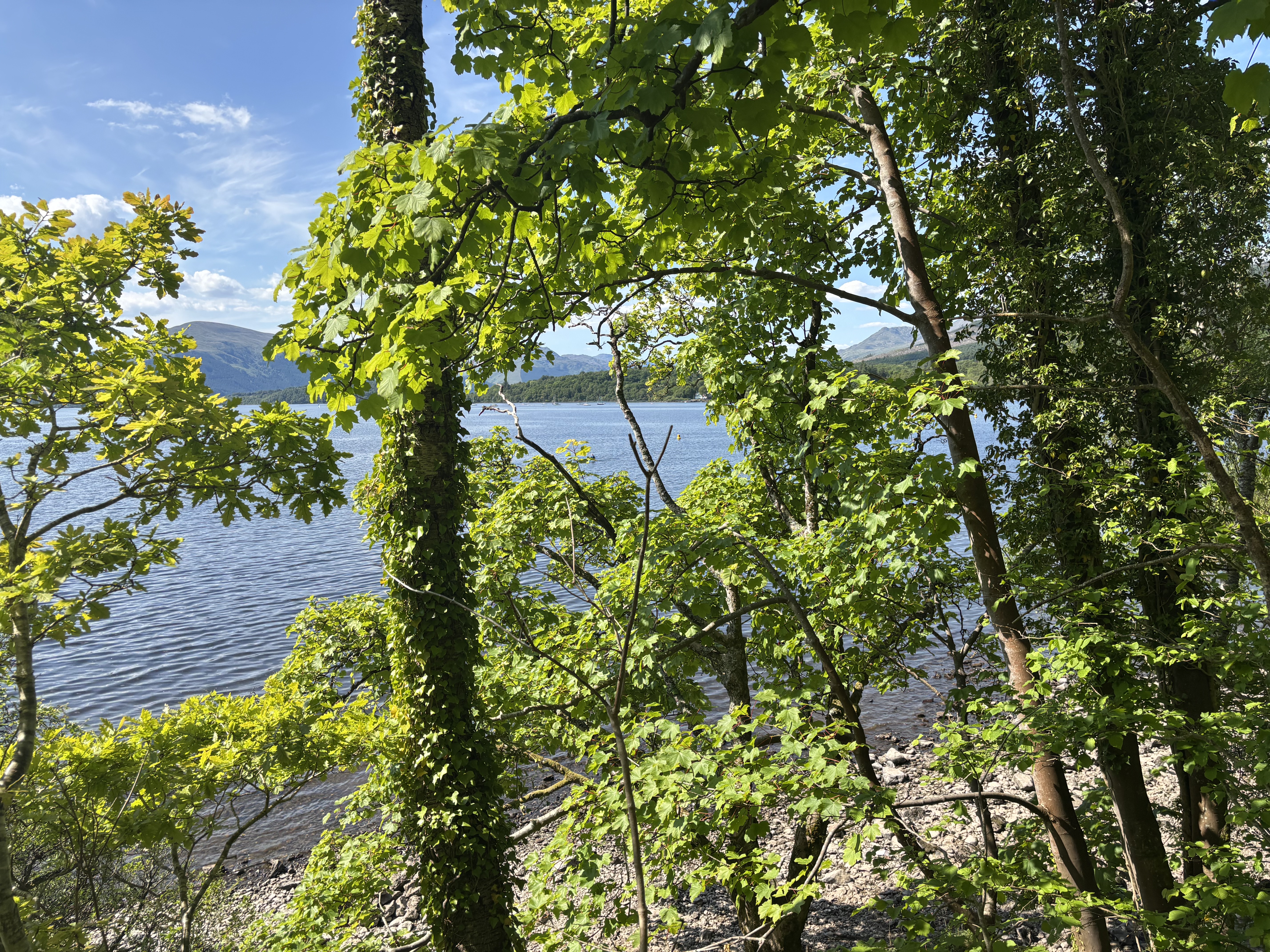 Balmaha was a tourist frenzy. The beaches were packed, the patios were exploding beyond capacity and there were people everywhere. The plan to curl up somewhere to relax for a while went out the window pretty quickly! I just chose to push on and get out of there. The trail goes directly along the main road and passes the Tom Weird statue. Weir was a climber, writer, photographer, broadcaster and avid environmentalist. After a quick photo-op, I took off.