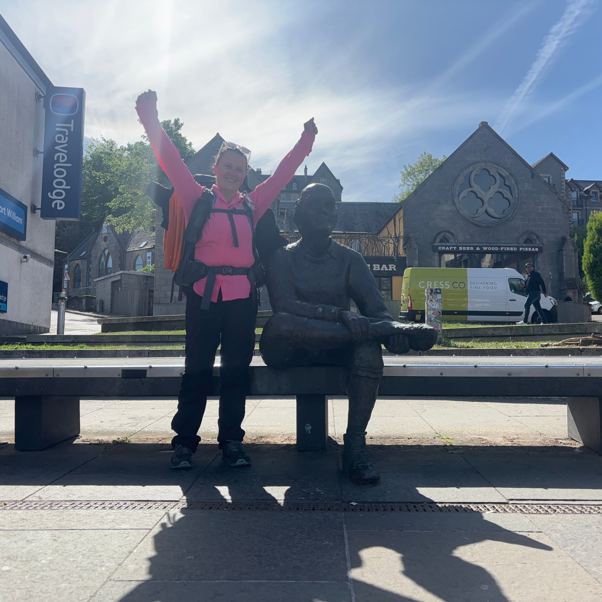 Hilariously enough, although I was feeling incredibly accomplished and proud of myself. I really don’t have the words the describe exactly how things felt in that moment. As I stepped away, I actually had the thought “now what?”. Not sure if that discounts the speciality of that moment but I spent the next few hours exploring the shops looking for some highland cow stuffies for my two boys at home and an official WHW hoodie. Bonus points assigned to myself for finding a finisher’s medal! As I strolled through, I found the most amazing little cafe that was fully plant based. The food and coffee were scrumptious. Upon finding my way back towards the library (my safe space when I need to kill time) and await for my train I happened upon Rowan. A young man I had met along the way and had gotten to know a little bit. I was not expecting to see him again, so I was given the opportunity to say one final goodbye to the one person I had not yet had the chance.